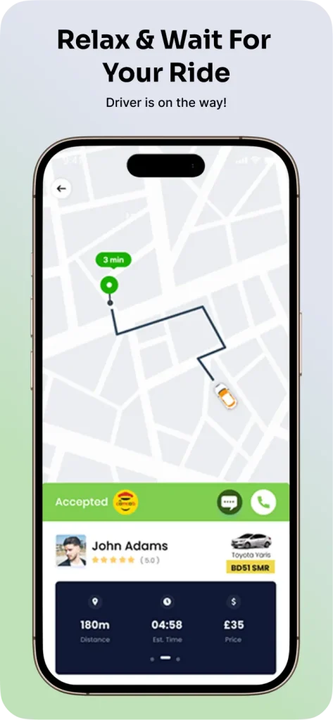 Your driver is on the way – track their arrival in real-time and see all the ride details upfront, including ETA, fare, and driver info. No calls, no confusion.